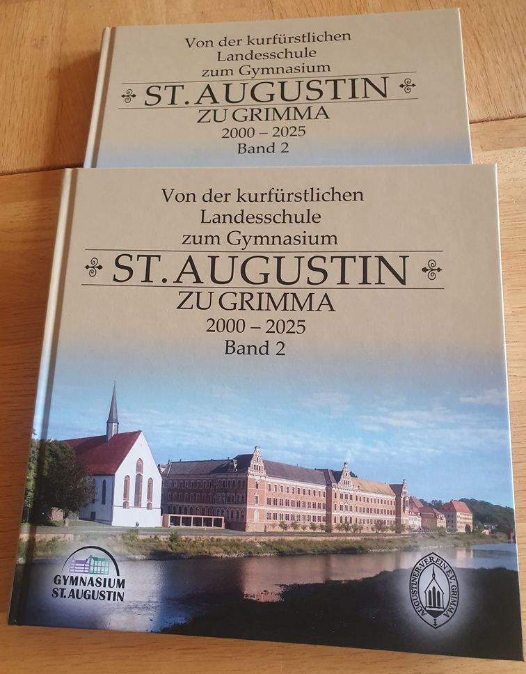 Festschrift zum 475. SchuljubiläumAm 14.09.2025 feierte unsere Schule das 475. Jubiläum. An diesem Tag erschien auch der 2. Band „Von der kurfürstlichen Landesschule zum Gymnasium St. Augustin zu Grimma 2000 – 2025“. Dieser Band legt den Schwerpunkt auf Entwicklungen der letzten 25 Jahre, die für die Zukunft die Weichen neu gestellt haben. Aus verschiedenen Perspektiven und mit persönlichen Erinnerungen verbunden werden Ereignisse dieser Zeit beleuchtet. Geschichte, Tradition, Gegenwart und Zukunft sind in dieser traditionsreichen Schule eng verknüpft. Das Buch können Sie erhalten über das Archiv des St. Augustin (lautenschlaeger_herma(at)yahoo.de) oder über die Buchhandlung Bücherwurm in Grimma.