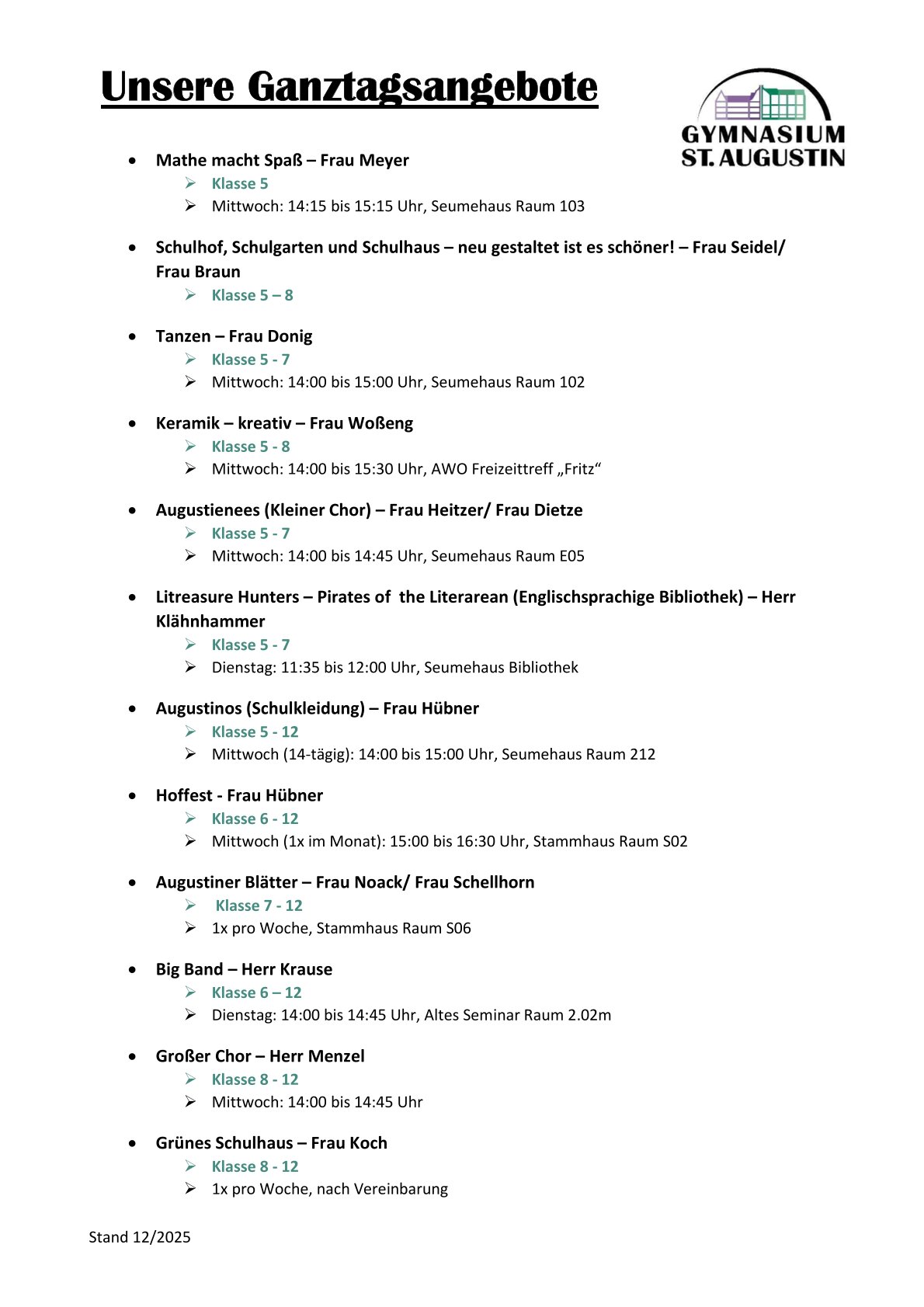 Unsere Ganztagsangebote bieten vielfältige Möglichkeiten außerhalb des Unterrichtes Wissen zu vertiefen und zu erweitern oder besondere Neigungen und Begabungen zu fördern.