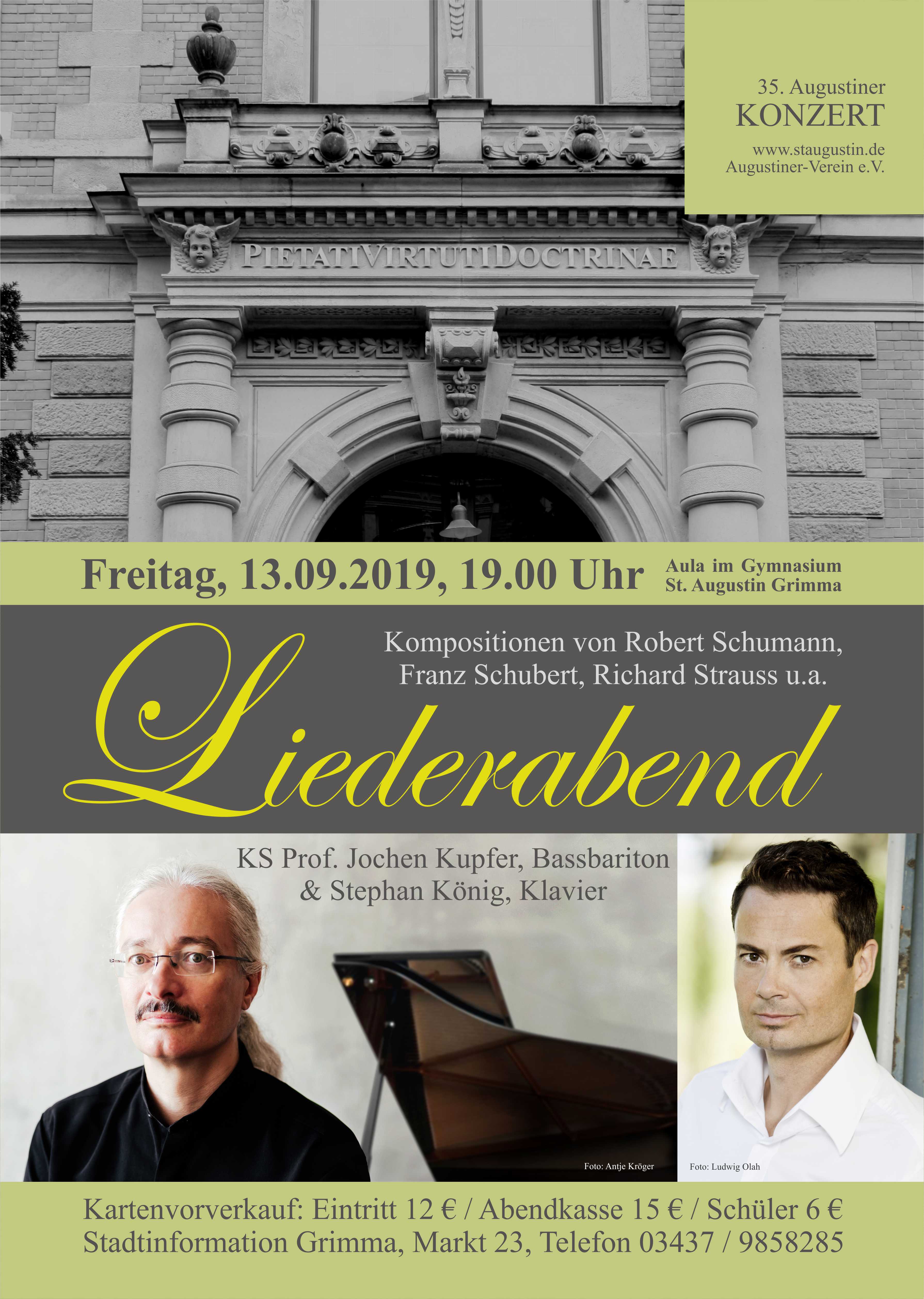 Rezension zum 14. Augustiner-Konzert: Leidenschaftlicher Auftritt mit träumerischen NuancenFlorian Poser und Stephan König begeistern beim 14. Augustinerkonzert im Grimmaer Gymnasium Der Fußboden im Kleinen Festsaal roch noch zu stark nach Lack, so dass das 14. Augustiner-Konzert am vergangenen Sonnabend in die Aula des Gymnasiums verlegt wurde. Und das war ein Glück: In diesem Klangraum konnten die zahlreichen Zuhörer diese Musik, die den Rahmen eines Kammerkonzertes bei Weitem sprengte, bei sommerlichen Temperaturen entspannter auf sich wirken lassen. Der ganze Saal atmete und schwang mit. Außerdem waren die beiden Künstler auf der Bühne bis in die letzte Reihe gut zu sehen, sinnlich-doppelter Genuss mit Florian Poser aus Oldenburg (Marimba, Vibraphon) und Stephan König aus Leipzig (Klavier). Beide namhafte Solisten gründeten 2012 ein Duo und komponieren auch speziell für diese Besetzung, wie an diesem Abend zu hören war. Beginnend mit eher ruhigem Swing mit einem Hauch von Südsee steigerte sich die Musik über Tango und Blues in freier Virtuosität bis zu wahrlich furiosen Tönen. Die Titel, komponiert von Martin Flindt, größtenteils aber von Poser und König, hatten laut Programm träumerische Namen wie "Crossing Minds", "Childhood" oder "February Sky". Sie gingen ineinander über, so dass das Konzert im Wesentlichen aus zwei gigantischen Blöcken vor beziehungsweise nach der Pause bestand - eine enorme Leistung der Virtuosen! Stephan König hämmerte bisweilen leidenschaftlich mit vollem Einsatz in die Tasten. Florian Poser ließ in jeder Hand zwei Schlägel wirbeln, dass das Auge nicht hinterherkam. Doch wirkten beide immer absolut entspannt. Man spürte ihre Freude am Zusammenspiel, und die Zuschauer hatten großen Spaß daran, wie sich beide improvisierend die Töne zuwarfen. Natürlich war nach rhythmischem Beifall eine Zugabe gefordert. Auf Königs Frage nach dem Wunsch kam die eindeutige Aufforderung aus dem Publikum: "Einfach losspielen!" Florian Poser wechselte in diesem Konzert zwischen Marimba und Vibraphon. Das Vibraphon als klassisches Jazzinstrument klingt metallisch und atmosphärisch, die Marimba mit hölzernen Klangstäben klingt dunkler und voller. Erste Aufzeichnungen über das Instrument datieren von 1352 aus Mali. Als Resonanzröhren dienten klassisch Flaschenkürbisse. Dann zog die Marimba um den Erdball und ist heute vor allem in Südamerika beheimatet. In die weite Welt wird König der Augustinerkonzerte auch beim nächsten Mal entführen: Am 12. 9., anlässlich des Stiftungsfestes, geht es mit der Chinesin Ya Dong, mit Pipa, Piano und Percussion, nach Shanghai. (von Beate Bahnert) |